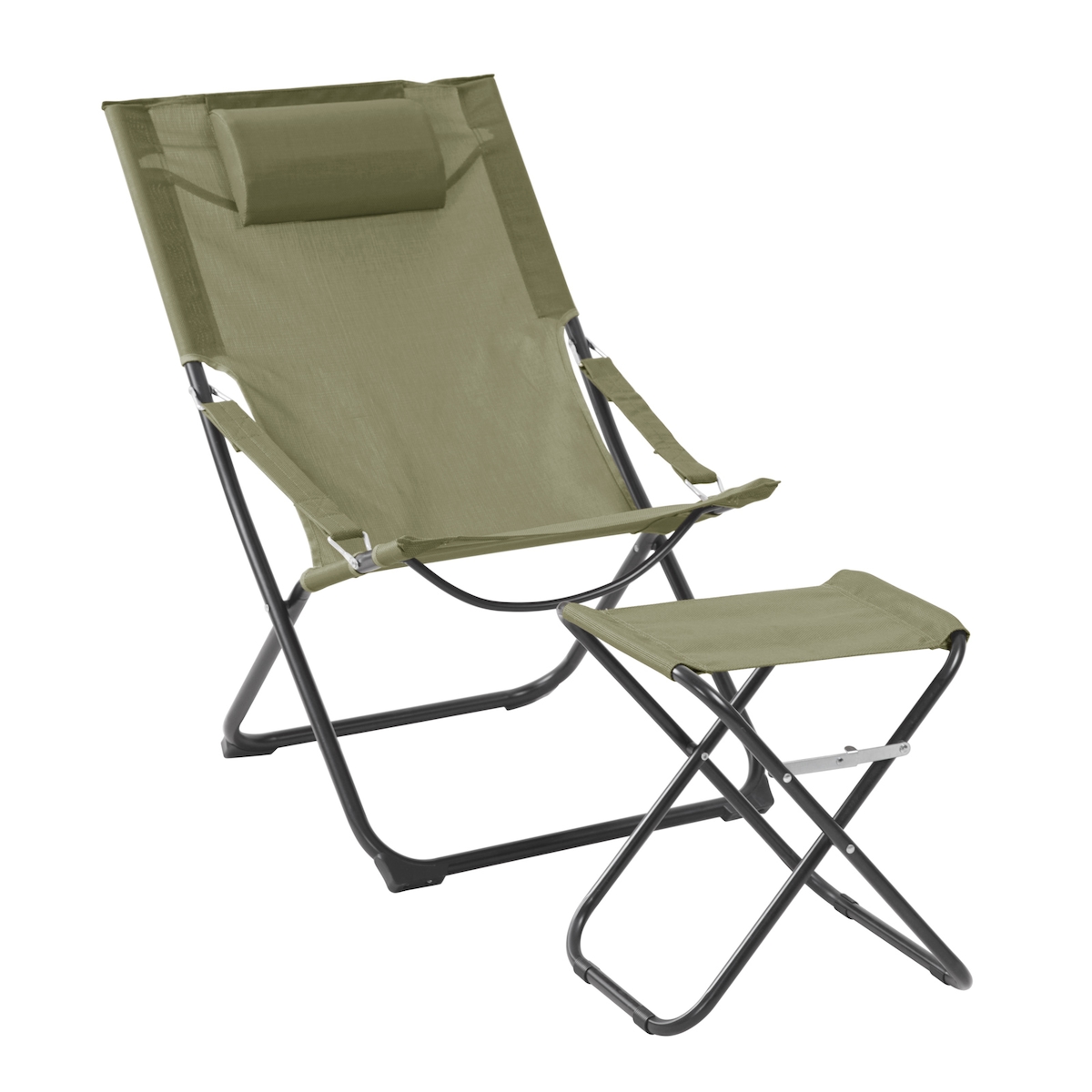 SVITA Liegestuhl mit Hocker klappbar Strandstuhl Klappstuhl Kopfkissen Grün