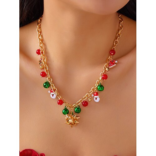 collana con ciondolo natalizio da donna, vari stili con ciondoli a forma di Babbo Natale, pupazzo di neve e albero di Natale, perfetti per feste e regali festivi