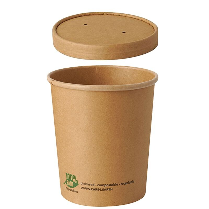 500 Bio Suppenbecher + Deckel To Go, Pappe `pure` rund 940 ml braun `100% Fair`