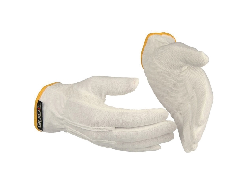 Bomuldshandsker Guide 549, PVC-Dupper, Str. 8, Paket a 12 par
