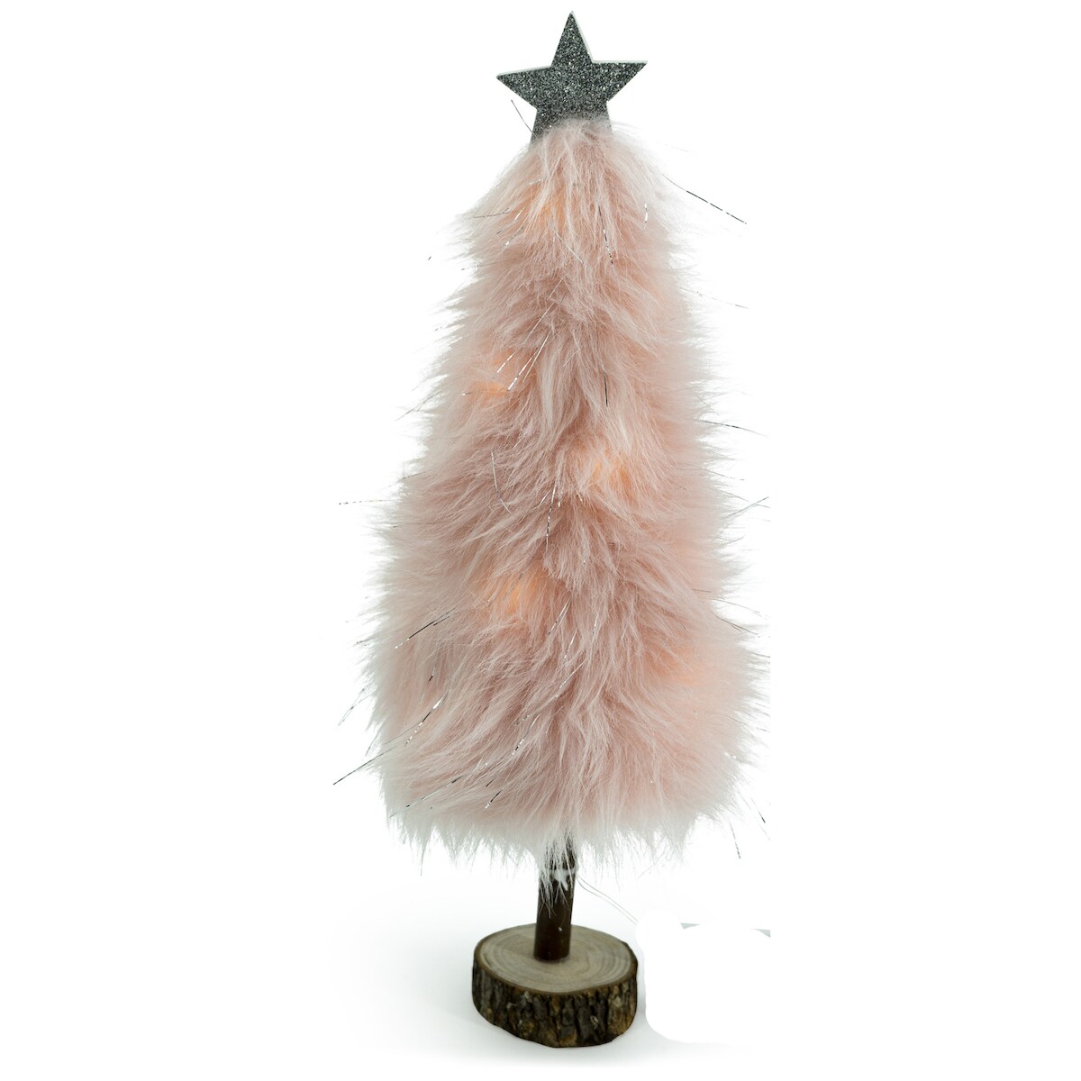 MARELIDA LED Dekobaum PLÜSCH mit Sternspitze Plüschfell leuchtend H: 36,5cm Batterie rosa