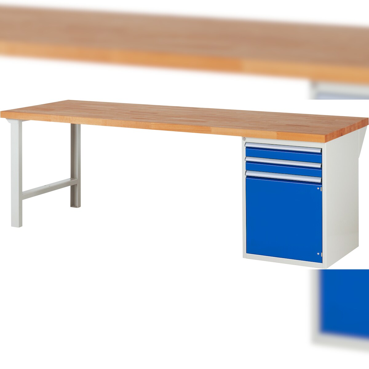 PROREGAL Werkbank Serie 7000 - Modell 7503 | HxBxT 84x250x90cm | 2x Schublade + 1x Flügeltür + 1x Fachboden | Schubladenmaße 2x90mm