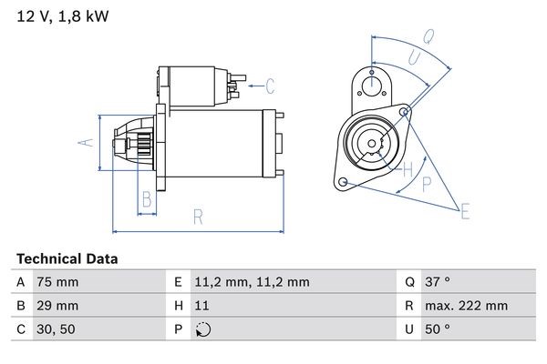 Käynnistin 12V Bosch 0 986 023 250 - fiat, opel, saab, vauxhall - OE 12 564 088, 1202088, 12564088