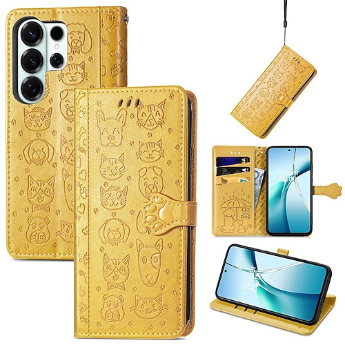 Handy Hülle Handyhüllen Für Samsung Galaxy S26 S26 Plus S26 Ultra Brieftaschenhülle Flip-Cover Mit Handgelenkschlaufe Ständer Katze Hund TPU PU-Leder