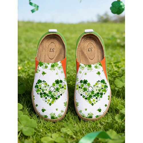 Sneakers slip-on da donna con stampa di trifoglio e gatto nero per San Patrizio: scarpe comode, traspiranti e leggere per sfilate irlandesi, feste di festival e celebrazioni di strada abbigliamento