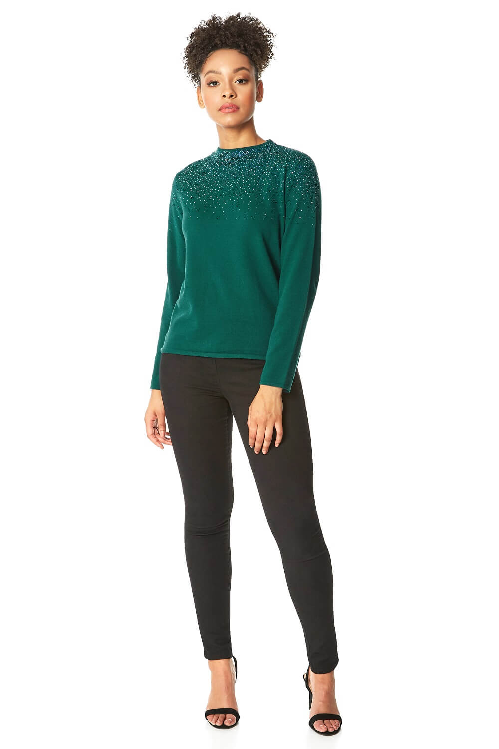 Roman Womens Diamante Long Sleeve Jumper - Dark Green - Size 14 UK | Roman Sale | Discount Designer Brands