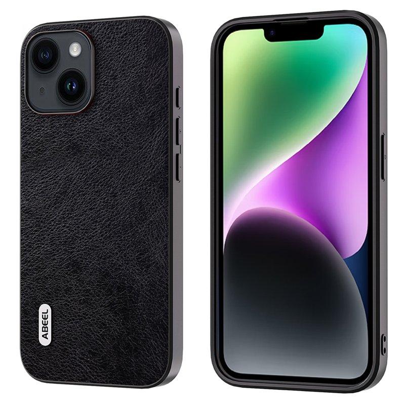 ABEEL iPhone 15 Plus Fodral Litchi Textur Svart