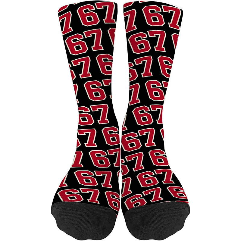 Funny Six Seven 67 Meme Socks Athletic Crew Socks Casual Seamless Printed Socks with Soft Breathable Fabric Comfortable Everyday Sport Style for Walking Running Gym Wear