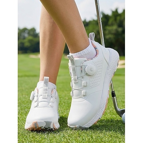 scarpe da golf da donna con chiusura a quadrante bianco – scarpe da ginnastica ammortizzate senza tacchetti per golfiste, camminate, allenamento, campo pratica e sport all'aria aperta