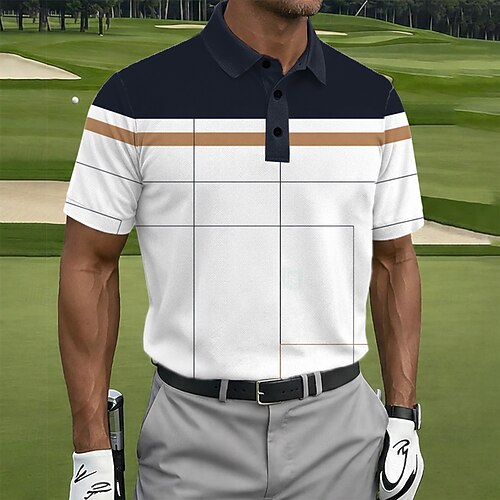 Per uomo Geometrico Golf Polo Sportivi Manica Corta Magliette polo Camicie con Colletto Abbigliamento Sportivo Athleisure Bottoni Estate Nero Bianco Blu