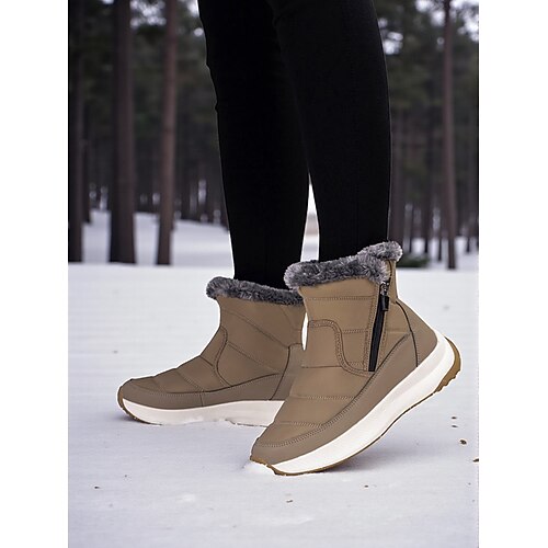 stivali da neve invernali caldi da donna con fodera in pelliccia sintetica e cerniera laterale, stivaletti antiscivolo impermeabili per l'uso all'aperto