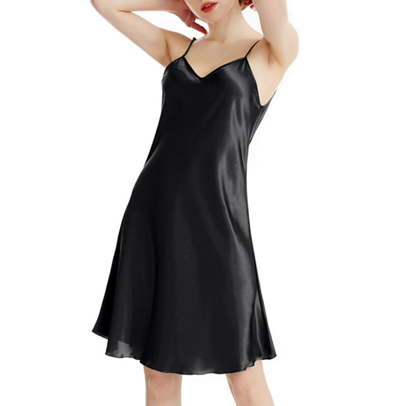 Women's Nightgown Casual Soft Satin Pure Color Backless Dress Daily Home Bed Sleeveless Straps Lake blue Black Yellow Red Purple Summer Slim
