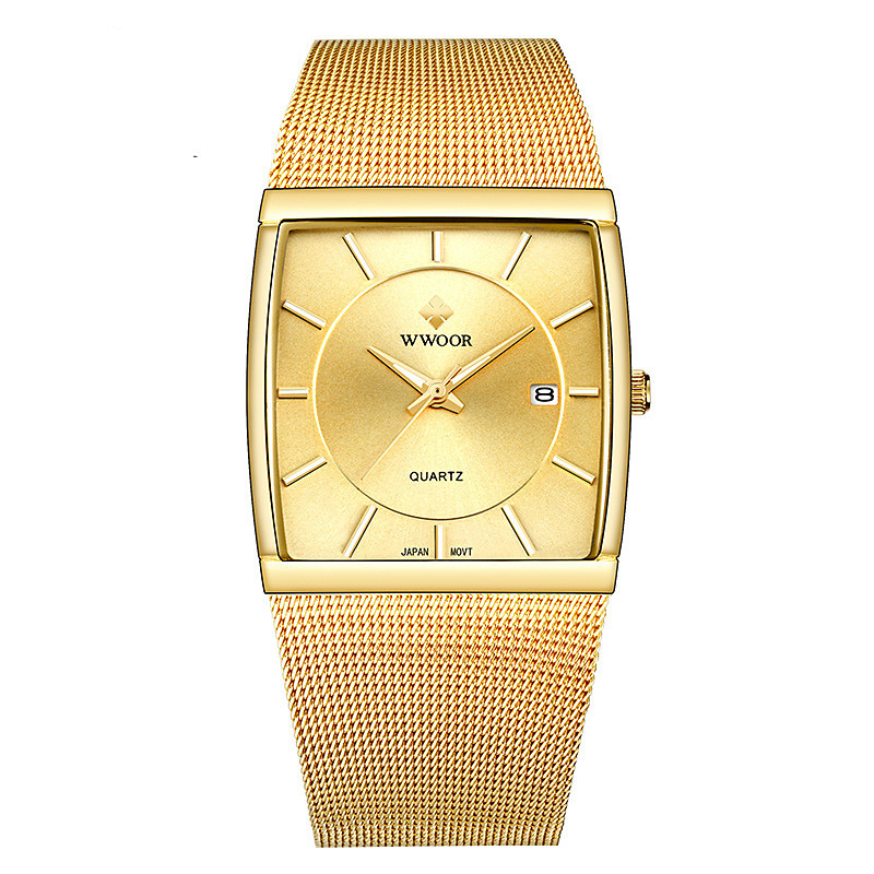 Men's Square Ultra-thin Watch Luxury Gold Watch Men's Quartz Steel Mesh Waterproof Watch Box Gift Relogio Masculino