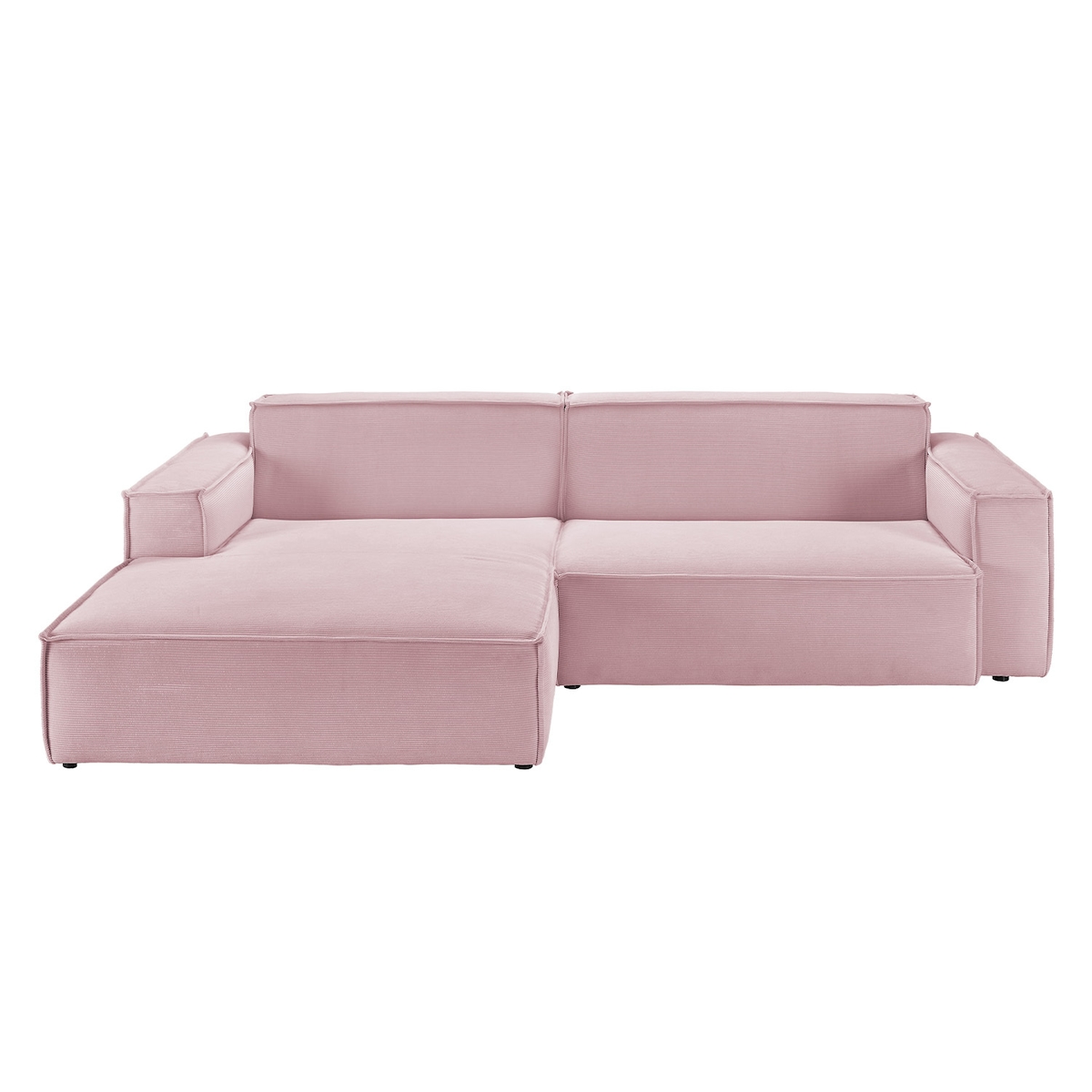 KAWOLA Sofa SAMU Ecksofa Feincord rosa Recamiere links