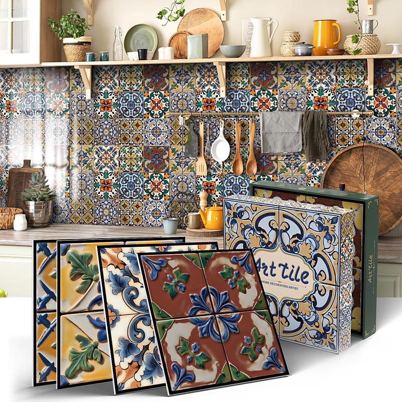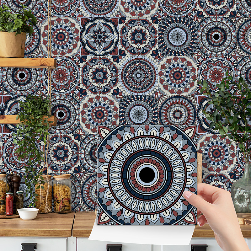 24/48pcs Self-adhesive Wall Stickers Waterproof Fashion Moroccan Tile Stickers Creative Kitchen Bathroom Living Room