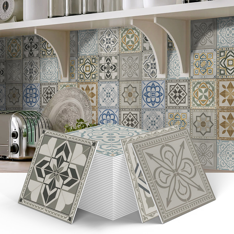 Vintage Self-Adhesive Tile Sticker Square Peel and Stick Non-Slip Waterproof Removable PVC Bathroom Kitchen Home Decor Floor Wall Stair Tile Sticker