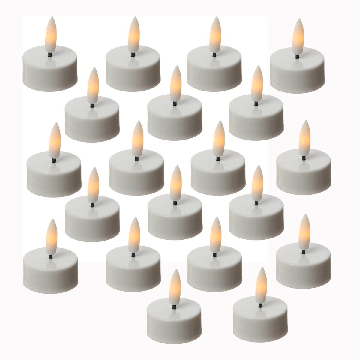 441 LED Teelichter mit Batterien Timer flackernd D: 3,8cm weiß 20er Set