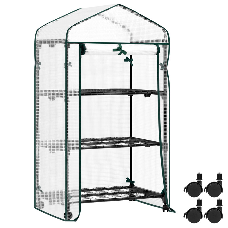WOLTU Garten Gewächshaus, mit Rollen, Balkon Gewächshaus, 70x50x131 cm, PE-Abdeckung 140 g/m², Roll-Up Reißverschlusstür, zum Überwintern mit 3/4 Regalen, für Innen und Außen, Weiß