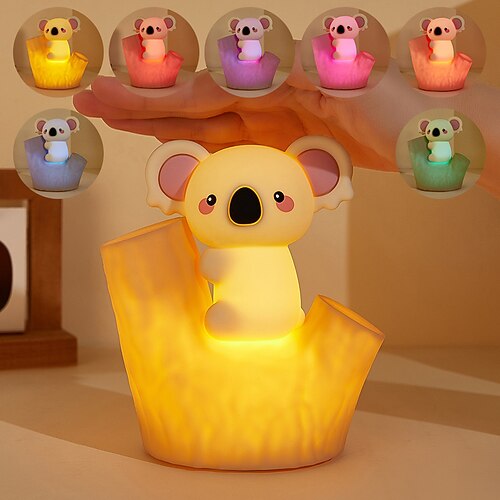 Luce notturna con timer, carica USB, luce per atmosfera da camera da letto, regalo di compleanno, festa di Natale, capodanno, koala in silicone morbido con gradiente di 7 colori