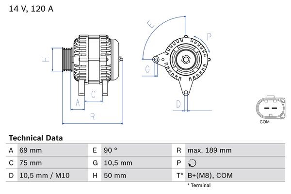 Laturi 14V 120A Bosch 0 986 046 170 - bmw - OE 12 31 7 519 618, 12 31 7 519 620