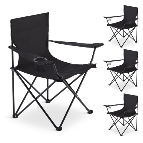 Faltstuhl 4er-Set, Anglerstuhl mit Getränkehalter, faltbar, mit Tragetasche, bequem, klappbar und belastbar bis 120 kg Schwarz, Raburg Joe