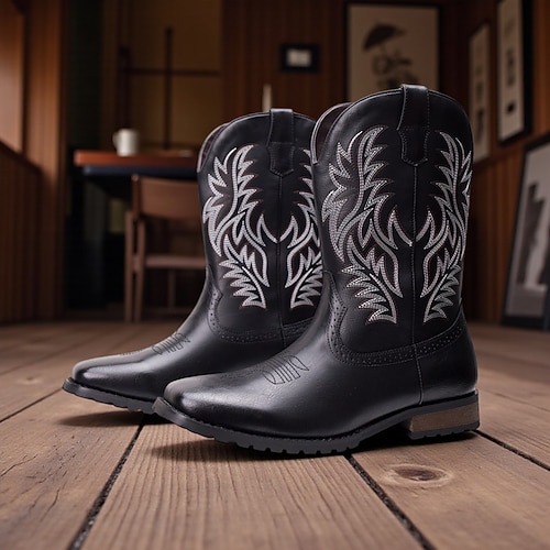 Herren-Western-Cowboystiefel – klassische, bestickte Schuhe im Rodeo-Stil bis zur Wadenmitte für lässige Ranch- und Country-Outfits
