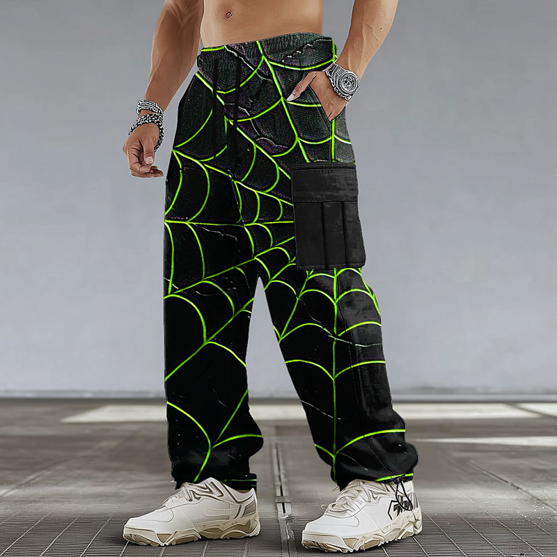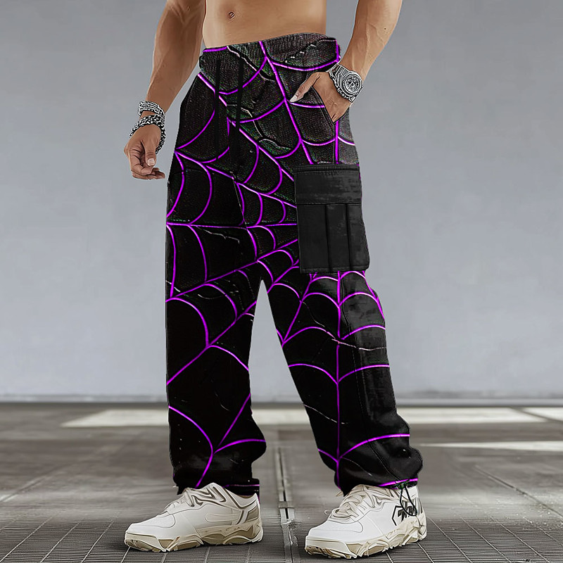Halloween Men's Spider web Halloween Costumes Cargo Sweatpants Joggers Casual Pants Mid Waist Dark Gothic Style Athletic Hiking Workout Elastic Drawstring Waist Open Bottom Tactical Pants with Pockets