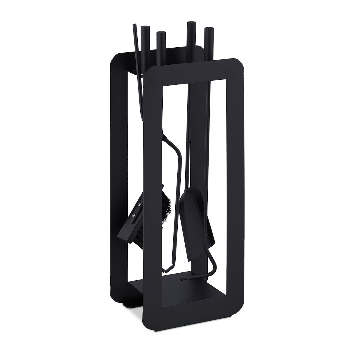 Relaxdays Kaminbesteck, 5-teiliges Set, Schürhaken, Ascheschaufel, Besen, Zange & Ständer, Kamingarnitur, Stahl, schwarz