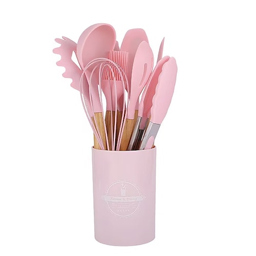 12-teiliges Küchenhelfer-Set aus Silikon, antihaftbeschichtete Kochutensilien inklusive Pfannenwender, Pfannenwender, Zange und Schneebesen, hitzebeständige Kochutensilien aus Silikon zum Backen und