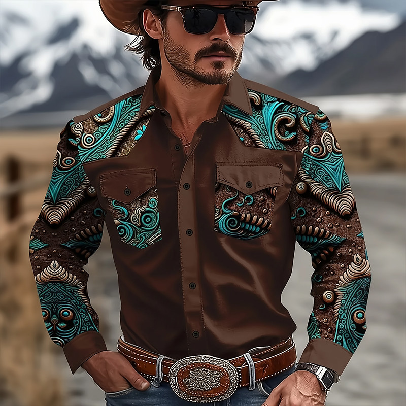 Men's Tribal Ethnic Bandana Print Shirt Button Up Shirt Long Sleeve Vintage Tribal Outdoor Street Casual Daily Fall Winter Turndown Buttons Print Yellow Purple Orange Brown
