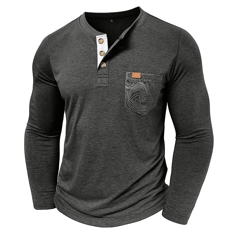 Men's T Shirt Henley Shirt Tee Long Sleeve Tribal Solid Designer Basic Bohemian Pocket Henley Outdoor Casual Daily Summer Fall Dark Grey Black White Henley T-Shirt