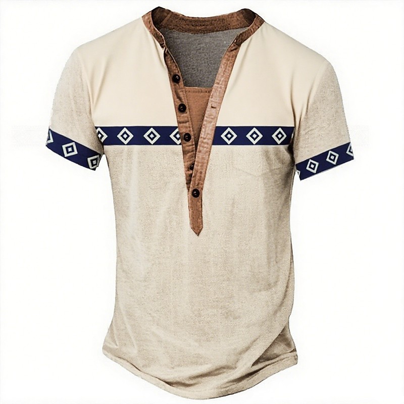 Men's Tribal T Shirt Short Sleeve 3D Print Vacation Fashion Ethnic Casual Summer Spring Khaki Henley Henley T-Shirt