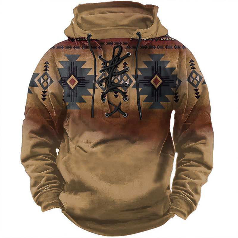 Damen Hoodie Pullover Sweatshirt Oversized Lange Ärmel Lässig Grafik Tribal Vintage Mode Western Kapuze Reguläre Tops Straße Alltag Urlaub Druck Fronttasche Schwarz Herbst Winter