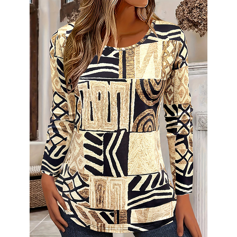 Women's T Shirt Graphic Tribal Vintage Stylish Casual Long Sleeve Crew Neck Long Tops Daily Print Blue Brown Green Khaki Spring Fall