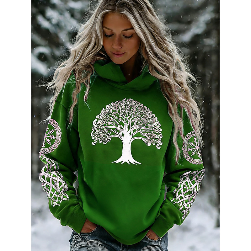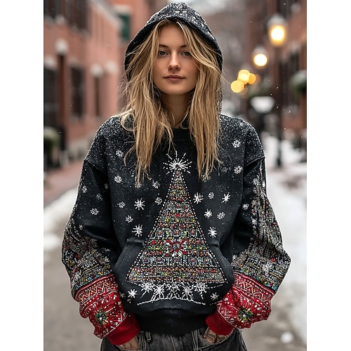 Damen Baum Schneeflocken Pullover Hoodie Sweatshirt Grafik Geometrisch Tribal Lässig Lange Ärmel Kapuze Reguläre Tops Party Abendkleidung Street Alltagskleidung Schwarz Frühling Herbst Winter