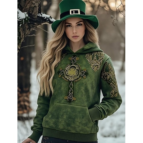 Women's Pullover Hoodie Sweatshirt Graphic Tribal Punk Vintage Fashion Long Sleeve Hooded Regular Tops Home Work Street Pink Purple Green khaki Spring Fall Winter