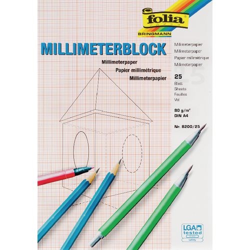 Folia DIN A4 Millimeterblock Weiß 80 g/m² 25 Blatt