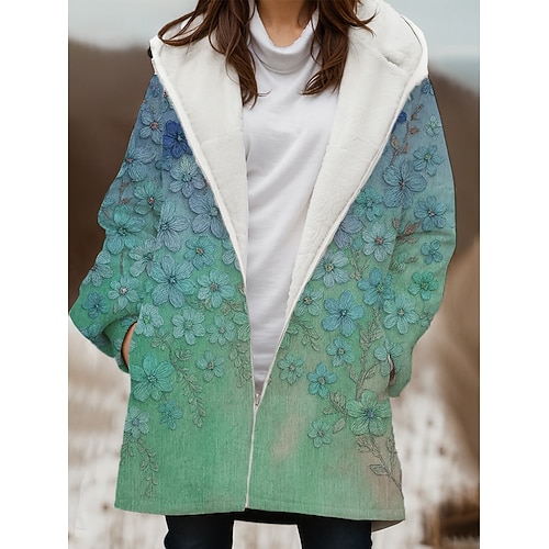 Giacca Invernale Donna Giacca Invernale Foderata In Pile Antivento Calda Tasche Con Cerniera Casual Floreale Outdoor Vacanza Casa Casual Con Cappuccio Regolare Maniche Lunghe Abbigliamento Esterno