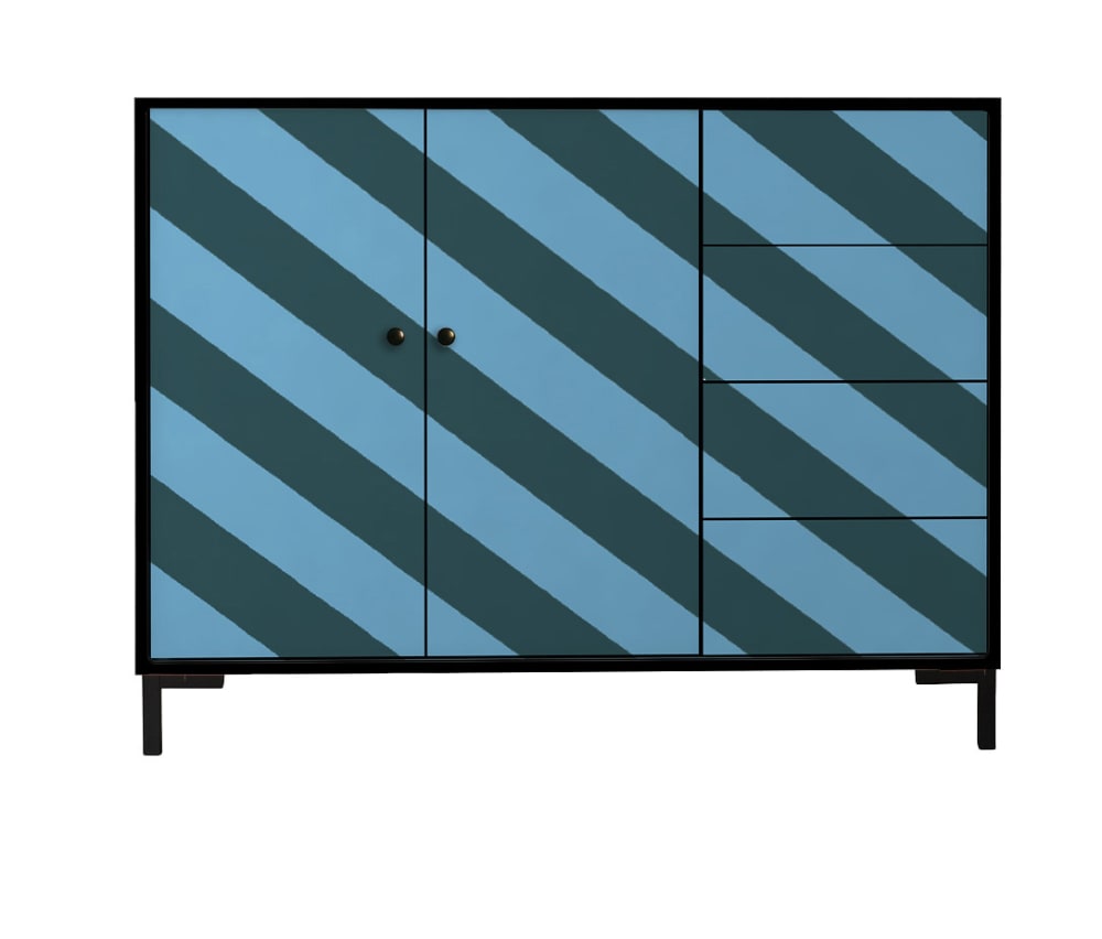 Credenza bassa 2 ante 4 cassetti effetto legno stampa