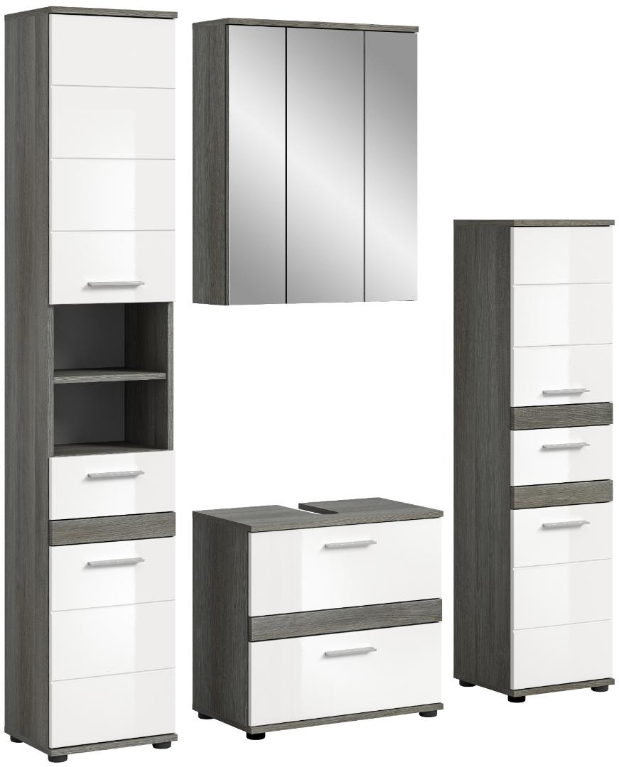 Blake Badmöbelset B4 Weiß hochglanz, grau.