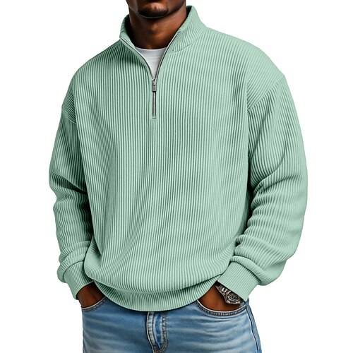 Per uomo Camicia di Velluto a Coste Testurizzato Casuale Vacanza Zip a un quarto Manica Lunga Moda Essenziale Tinta unica Cerniera Autunno Primavera Autunno Autunno Inverno Vestibilità comoda