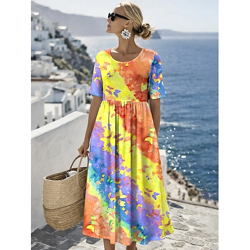 Per donna Abito Midi Abito a Tubino Vacanza Casual Ferie Vestibilità comoda Ombre Grafico Farfalla Manica Corta Girocollo Blu Giallo Rosa Viola Estate Primavera