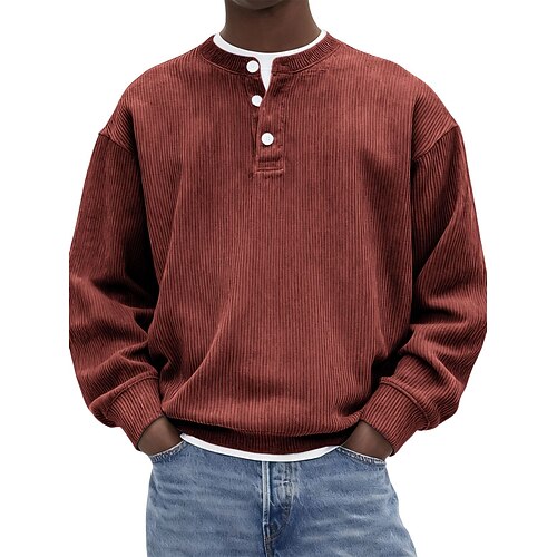 Per uomo Camicia di Velluto a Coste Maglia Henley Maglietta Manica Lunga Tinta unica Semplice Moda Designer Casual Cardigan con Bottoni Caldo Henley Casuale Quotidiano All'aperto Autunno Autunno