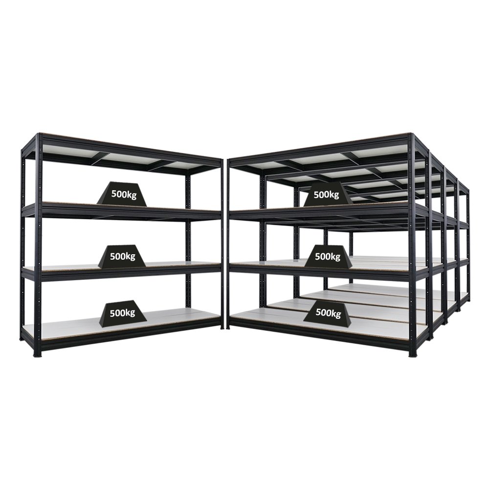 Proregal Mega Deal | 5x Schwerlastregal DINO | HxBxT 180x200x60cm | 4 Melamin-Ebenen 16mm | Fachlast 500kg | Schwarz
