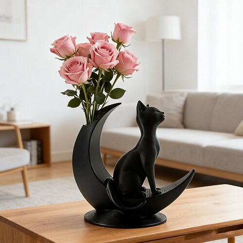 Vaso gatto luna 3d, vaso infrangibile fioriera leggera e carina a forma di gatto sulla luna per scrivania, Natale regalo di capodanno per gli amanti dei gatti, porta fiori secchi, arredamento per la