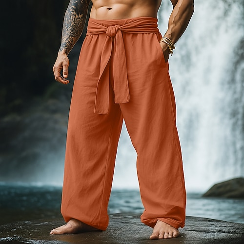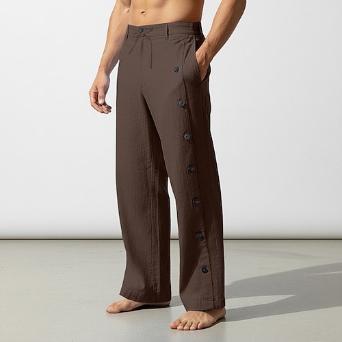 Per uomo Pantaloni di Lino Pantaloni Pantaloni Estivi Pantaloni Larghi Pantaloni da Spiaggia Coulisse Bottone laterale Gamba Dritta Semplice Comodità Traspirante Lunghezza intera Casuale Quotidiano