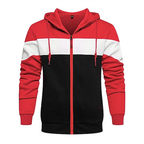 Per uomo Felpa con cappuccio Felpa con cappuccio a zip intera Felpa con cappuccio e zip Blu Bianco Rosso Cachi Con Cappuccio Blocco di colori Con zip Tasca Sport Outdoor Casuale Quotidiano