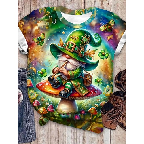 T-shirt da donna per il Giorno di San Patrizio trifoglio casual maniche corte collo rotondo top regolari stampa quotidiana verde estate