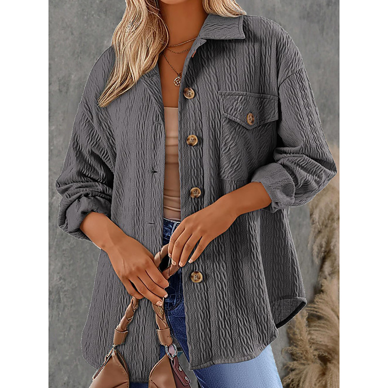 Women's Vacation Button Solid Color Breathable Fashion Loose Fit Outerwear Long Sleeve Spring Pink S