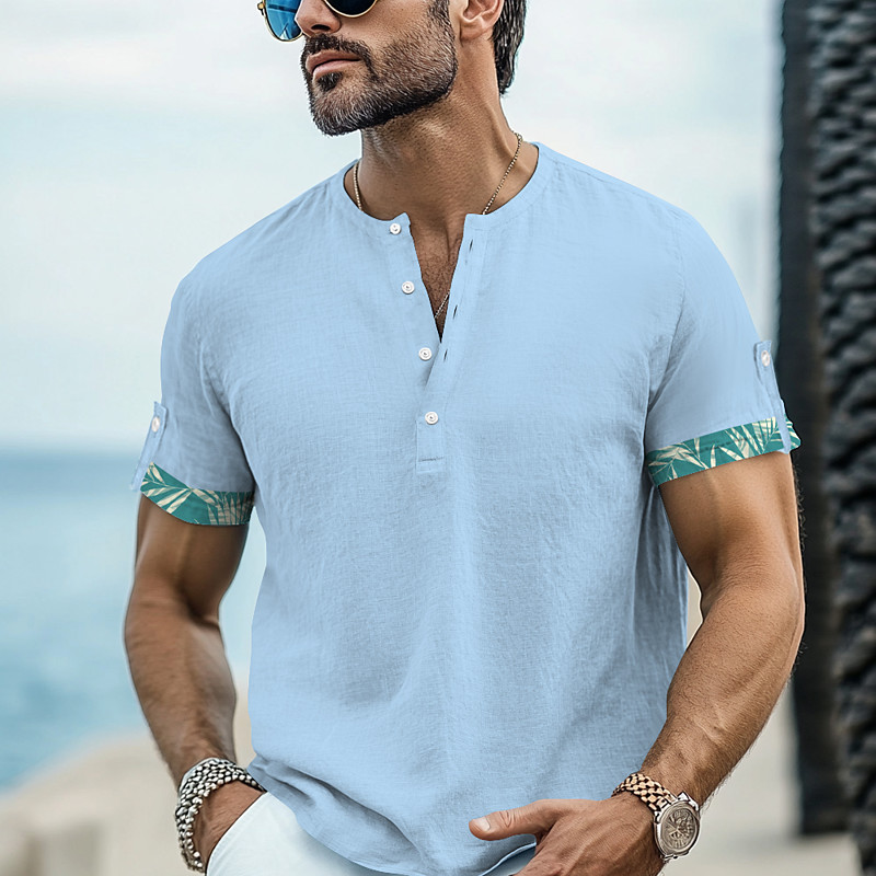 Men's Leaf Beach Shirt Aloha Shirt Short Sleeve Hawaiian Vacation Summer Spring V Neck Buttons Blue Green Gray
